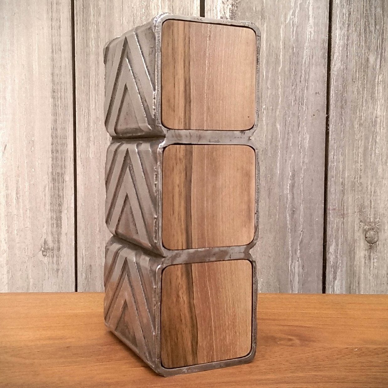 Mon travail explore la transformation du métal par des procédés de gravure, d’érosion et de stratification. J’utilise des formes architecturales simples — modules, poutres, volumes — que je confronte à une matière volontairement accidentée, presque géologique. Cette tension entre structure et transformation donne naissance à des sculptures où l’ordre industriel dialogue avec une matérialité organique.